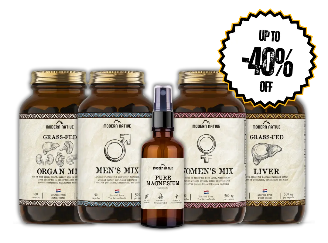 That's why Modern Native supplements are made from the organs of grass-fed cattle raised stress-free, grazing on their natural diet in the Dutch grasslands.