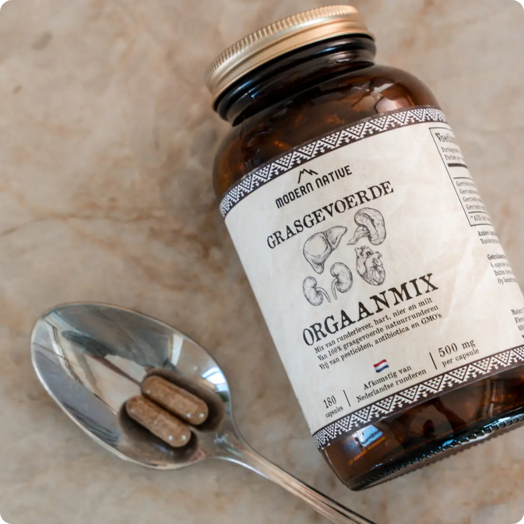 The ingredients for our supplements come from grass-fed cattle from the Netherlands. Because the cows are kept on natural grassland and are well cared for, nutrients are optimally preserved and you get higher-quality organ meat.