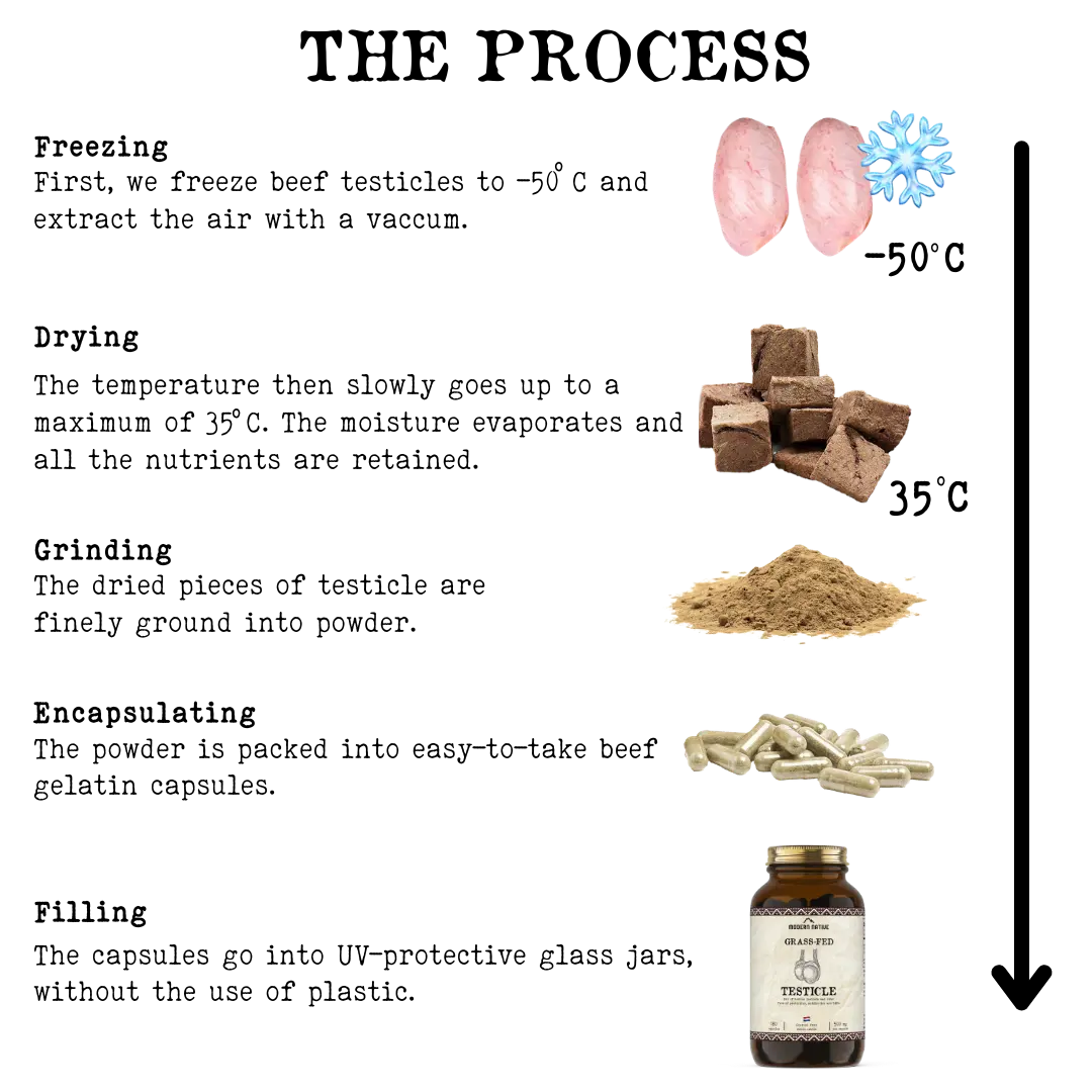 The ingredients for our supplements come from grass-fed cattle from the Netherlands. Because the cows are kept on natural grassland and are well cared for, nutrients are optimally preserved and you get higher-quality organ meat.